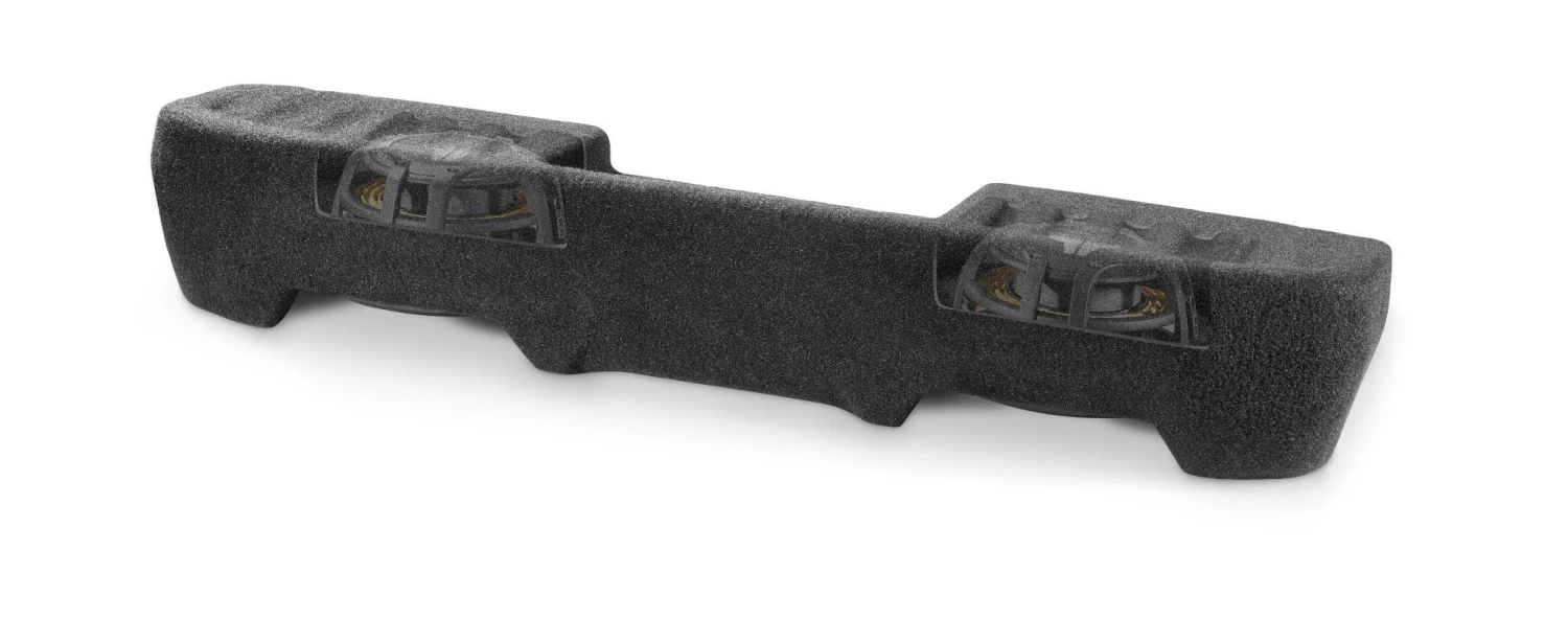 Featuring an all-fiberglass, sealed enclosure design, this Stealthbox® houses two of our innovative 10TW1 thin-line subwoofers and mounts neatly under the rear seat, without compromising rear passenger comfort. Rear seat folding is unaffected, and we even left space on the enclosure that’s perfect for a clean, hidden amplifier installation!