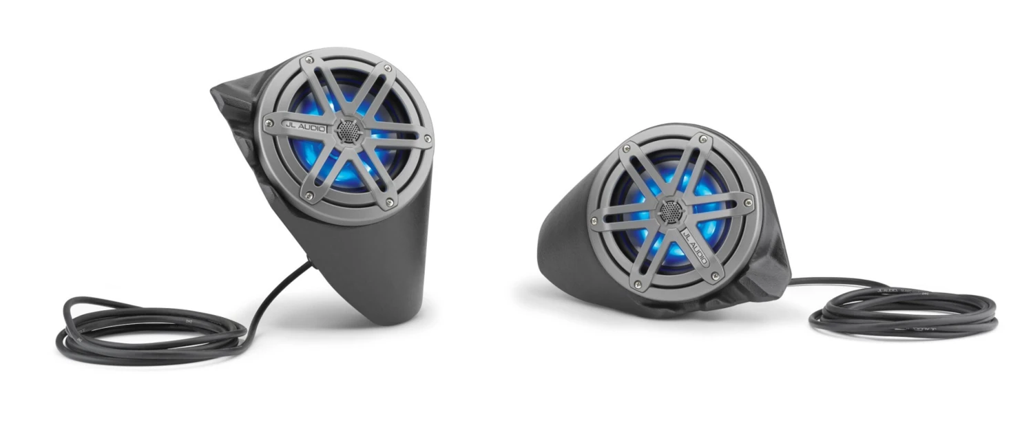 Purpose-built for two seat and four seat Polaris General vehicles, these custom-engineered speaker pods are constructed from 100% fiberglass with a rugged weatherproof finish and mount securely in each kick-panel, off the floor and out of the way. Each sealed enclosure houses